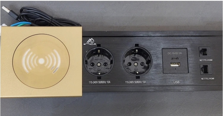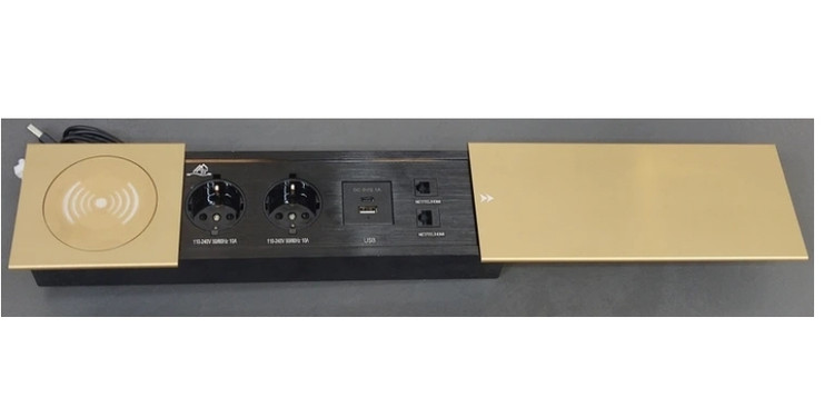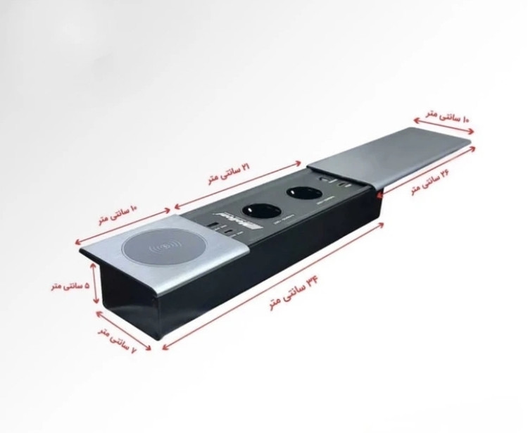 دارای درب کشویی الومینیومی می باشد که در مواقع عدم نیاز کشیده شده وسوکت ها و پورت ها را مخفی میکند