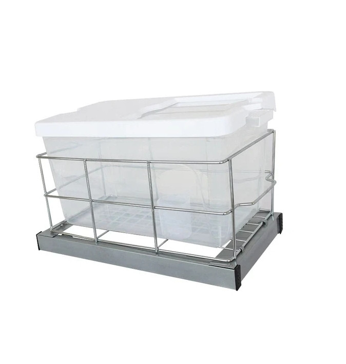 جا برنجی از مهمترین تجهیزات کابینت برای خانه هر ایرانی به حساب می آید.این محصول پرکاربرد از طریق دو ریل ساچمه ای بسیار قوی به کف کابینت پیچ میشود و به راحتی از کابین خارج شده و قابل دسترس میباشد.این محصول شامل یک مخزن پلاستیکی تهیه شده از مواد نو میباشد که ظرفیت 20کیلویی دارد.