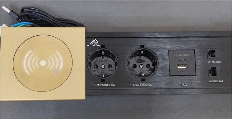 دارای درب کشویی الومینیومی می باشد که در مواقع عدم نیاز کشیده شده وسوکت ها و پورت ها را مخفی میکند