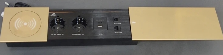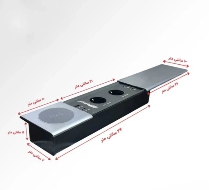 دارای درب کشویی الومینیومی می باشد که در مواقع عدم نیاز کشیده شده وسوکت ها و پورت ها را مخفی میکند